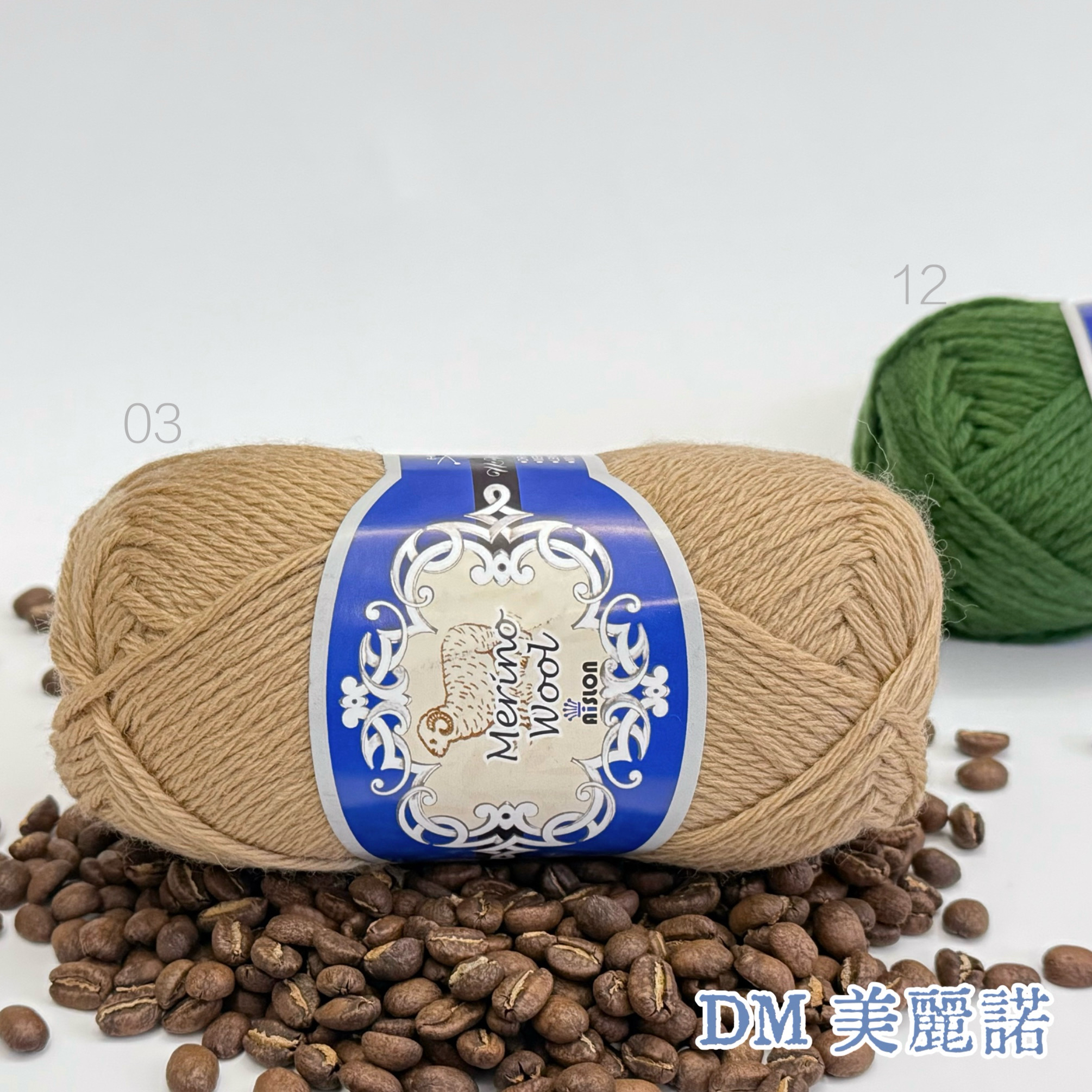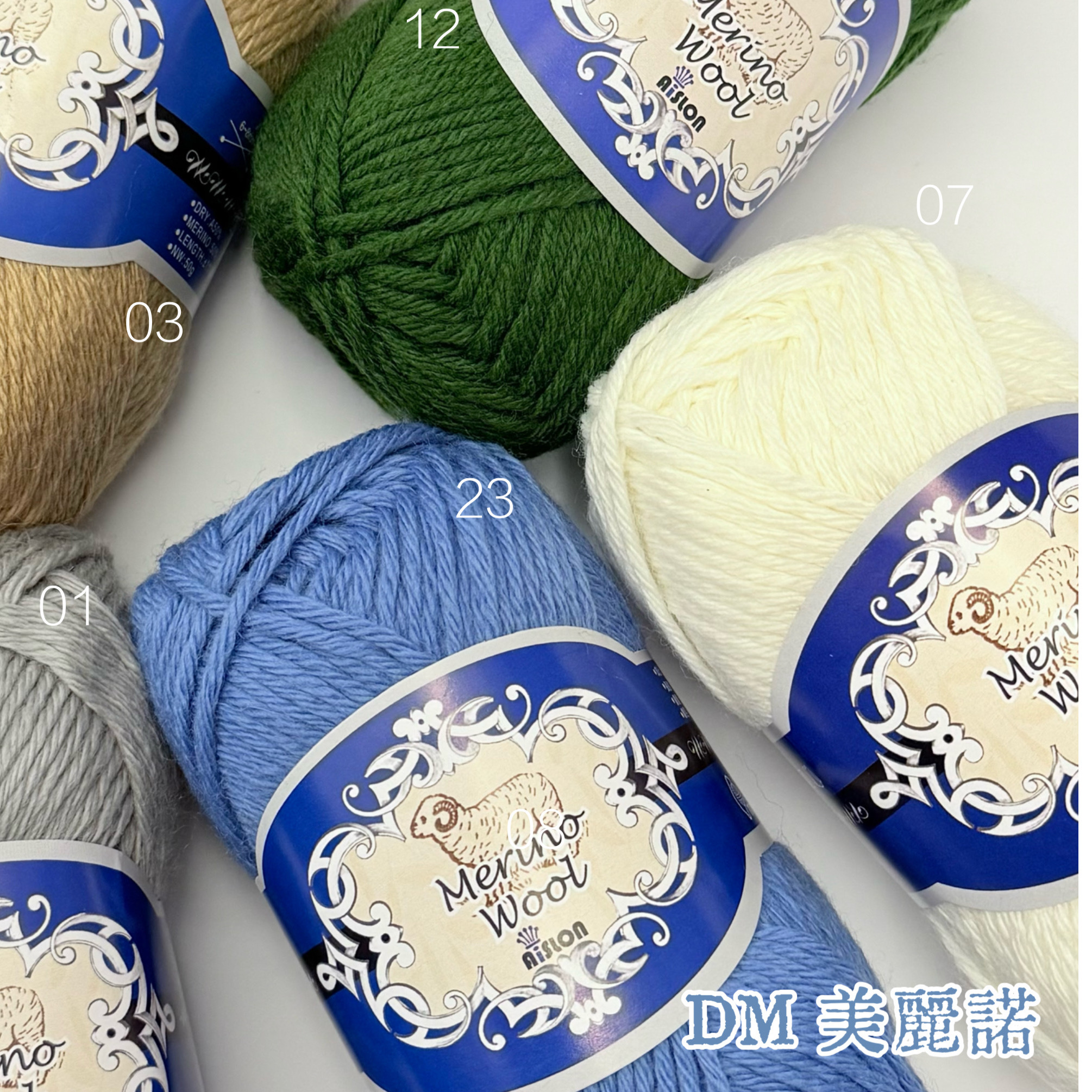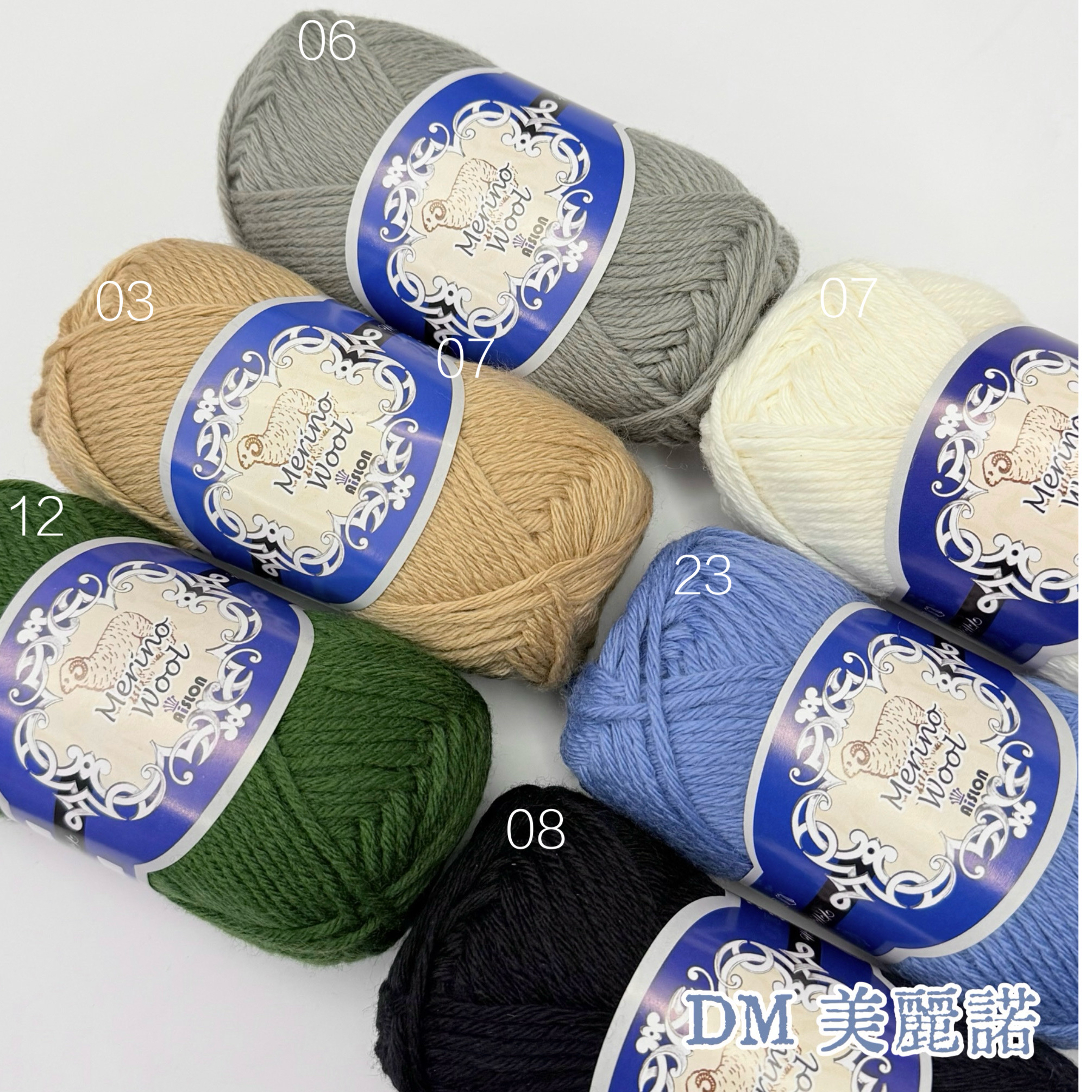 | 美麗諾羊毛 | DM | 50G=110M | ACRYLIC50% MMERINO50% | 共33色 | 10 顆/包 | 勾針5號;棒針6~8號 | 建議售價:100 元/(顆) |